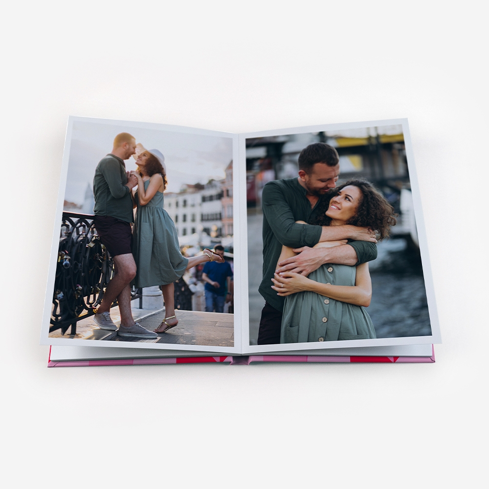 Os Álbuns de Fotos Dreambooks apresentam uma abertura panorâmica, com a possibilidade de colocar uma foto em destaque ocupando duas páginas. Dessa forma, desfrutará de uma visualização perfeita das suas fotos, sem cortes ou partes escondidas.