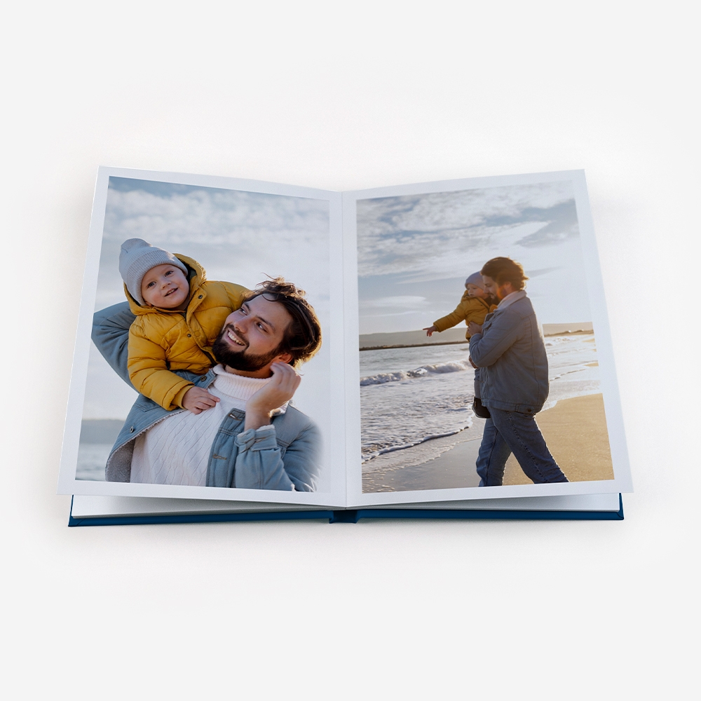 Os Álbuns de Fotos Dreambooks apresentam uma abertura panorâmica, com a possibilidade de colocar uma foto em destaque ocupando duas páginas. Dessa forma, desfrutará de uma visualização perfeita das suas fotos, sem cortes ou partes escondidas.
